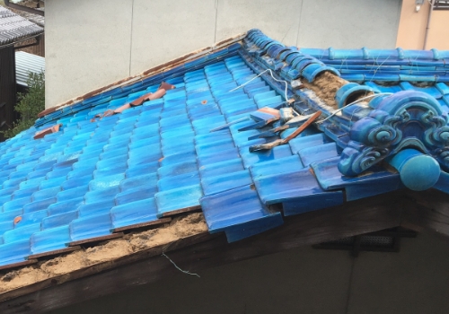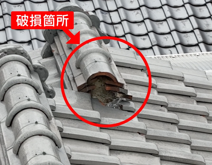 瓦の一部の劣化の他、鬼瓦も割れているのが確認できました。
